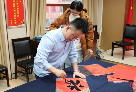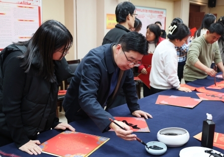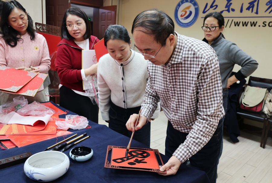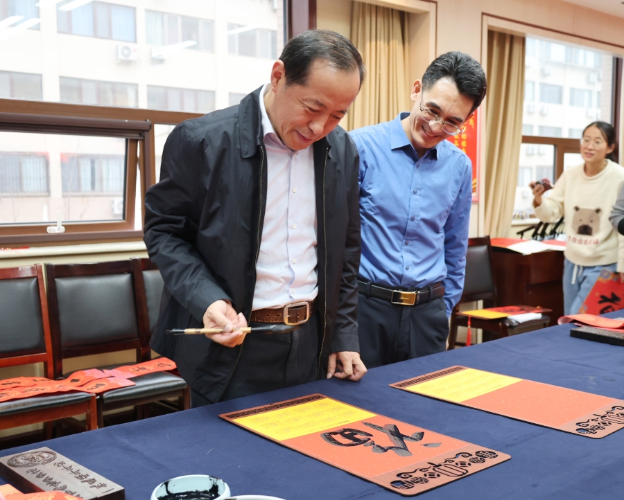 为弘扬中华优秀传统文化,厚植校园文化底蕴,营造喜庆祥和的新年氛围,12月22日下午,学校书法学院在千佛山校区二楼会议室举办“翰墨迎春 福满校园”主题活动。学校党委副书记、校长司家军,党委副书记王瑛,党委委员、副校长宁继红,党委委员、副校长吕文波等校领导与广大教职工齐聚一堂,挥毫送福、共迎新年。